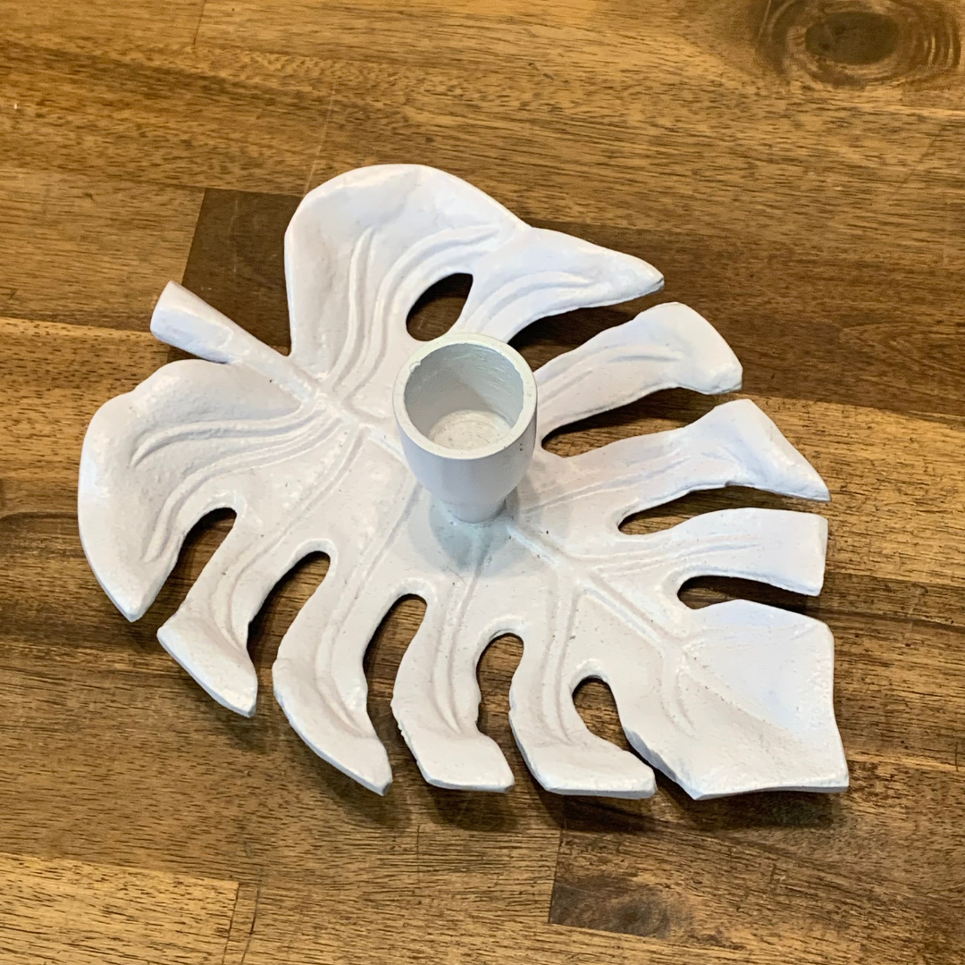 Transform your home with our beautiful monstera shaped leaf single pillar candle holder. Create a warm and inviting atmosphere with this unique and stylish piece, perfect for any occasion. Adds a touch of nature to any space. Elevate your candle display today!