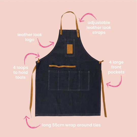 This denim work apron is designed for hands-on plant lovers, makers, and creatives who like their tools close and their workflow uninterrupted. Made from durable denim and finished with leather-look detailing, it balances practicality with a clean, workshop-ready aesthetic.